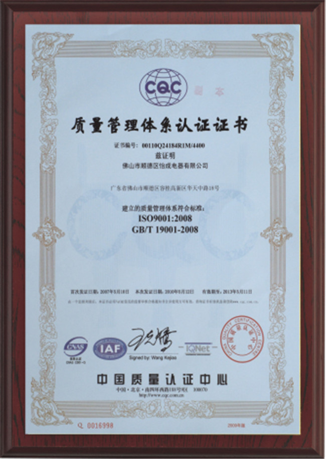 企業(yè)通過IS09001:2000國際體系認(rèn)證,并全面嚴(yán)格按照IS09001:2000體系進行運營管理。企業(yè)是中國土木工程學(xué)會燃?xì)夥謺T單位、廣東家電商會會員單位、順德燃?xì)饩呱虝T單位、順德家電商會會員單位,公司是國家出口產(chǎn)品二類企業(yè),公司主要產(chǎn)品出口北美和歐洲地區(qū),公司一貫堅持質(zhì)量、信譽至上...